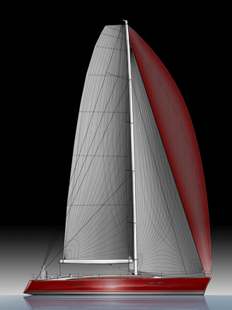 Adding a spinnaker and a 108% genoa to the mainsail, there will be more than 500 m2 (5400 ft2) to bring the yacht forward! |